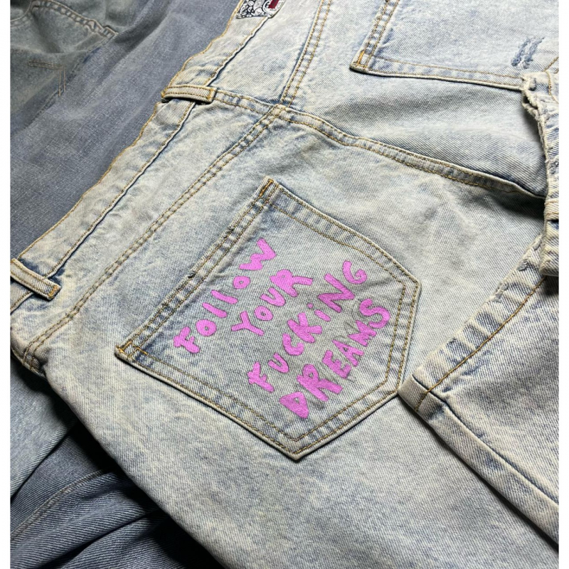To ensure the longevity of your custom jeans, we kindly request that you follow the wash care instructions provided. Proper care will preserve the beauty and durability of your hand-painted design for years to come.