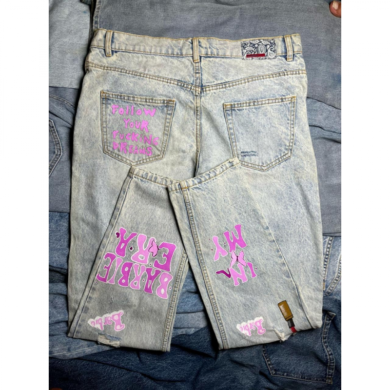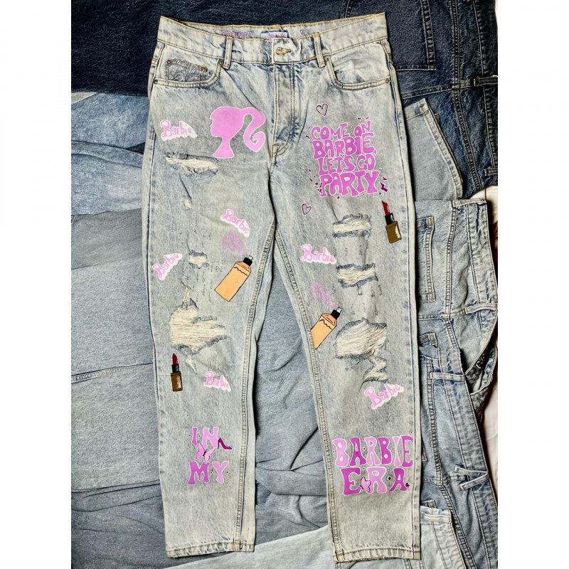 👑 Step into your Barbie Era with these hand-painted jeans! 💖🛍️ Whether you’re ready to party or embrace your inner Barbie, this unique pair from Gothic Gen Z brings the ultimate blend of nostalgic style and modern vibes. Each detail is carefully hand-painted to make a statement that’s all about boldness and individuality. 💅✨