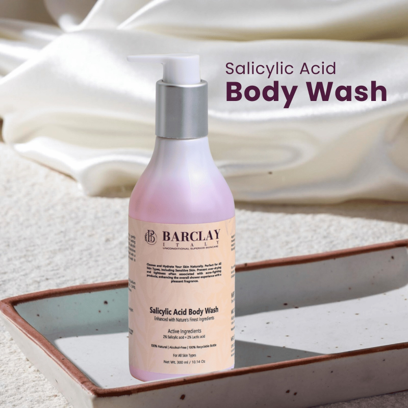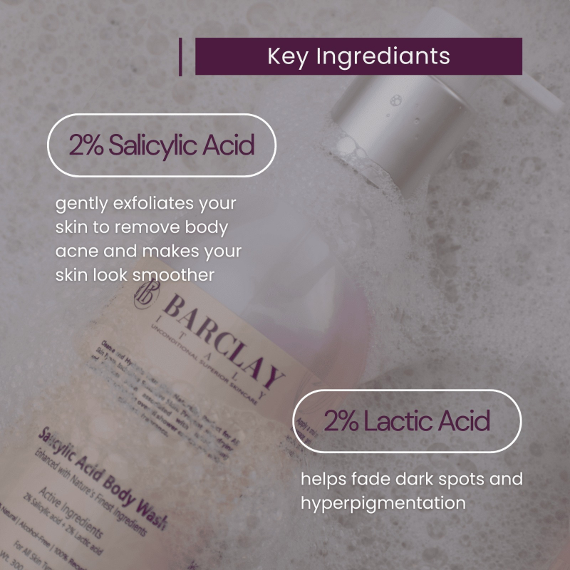 Barclay Italy Salicylic Acid Body Wash – 2% Salicylic Acid & 2% Lactic Acid for Clear, Smooth Skin | Targets Body & Back Acne, Exfoliates, Hydrates, and Soothes All Skin Types | 300ml