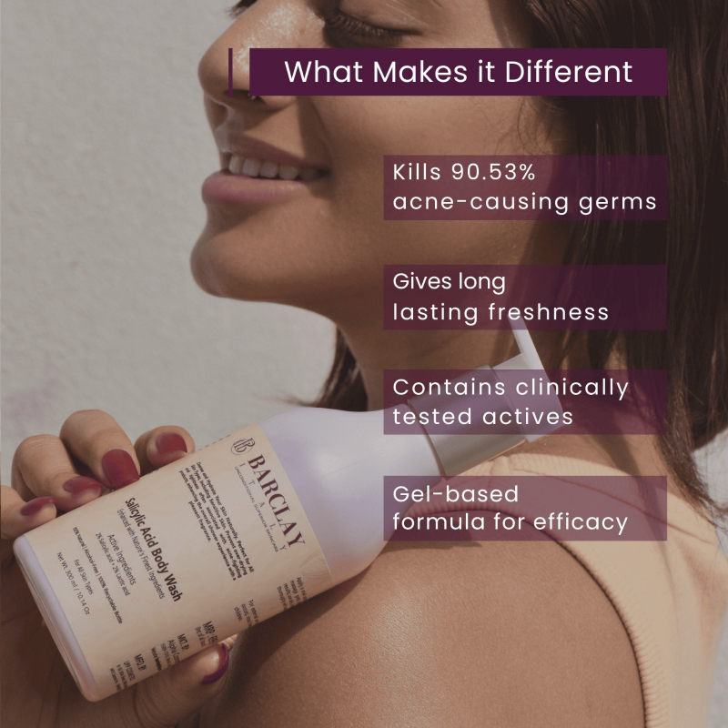 2% Salicylic Acid: Targets and prevents body, back, and chest acne by clearing pores and reducing breakouts.