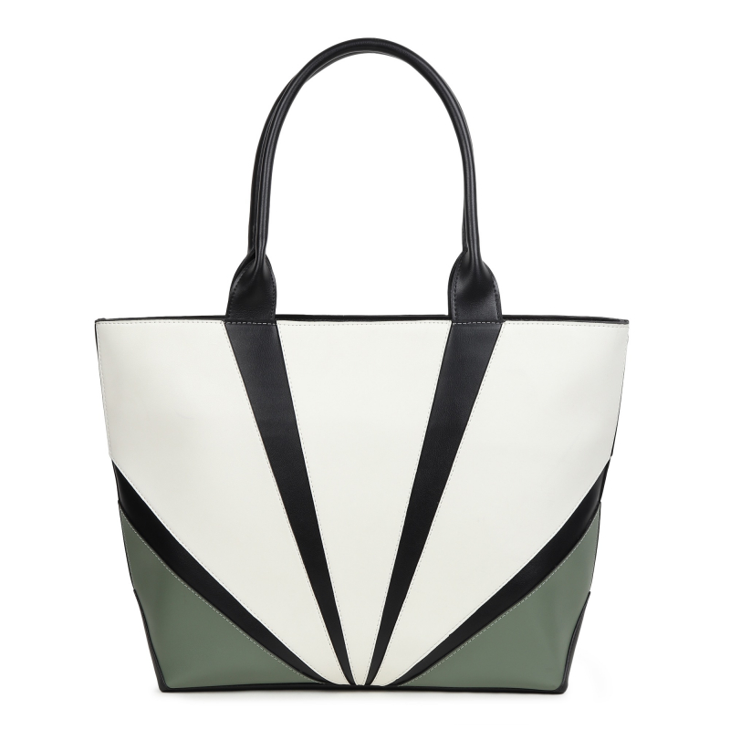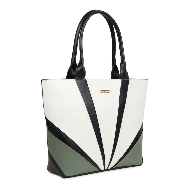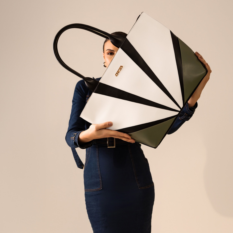 Elevate your style with our Canopy tote bag, where symmetry meets sophistication. Each panel is meticulously stitched, creating a mesmerizing 3D effect. Finished with sleek dori handles, this bag boasts a harmonious fusion of deep green, stark black, and crisp white hues, evoking the tranquil beauty of a forest at sundown.