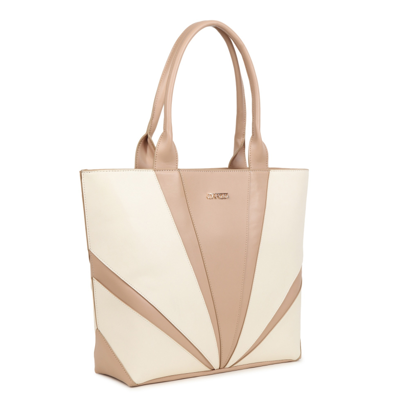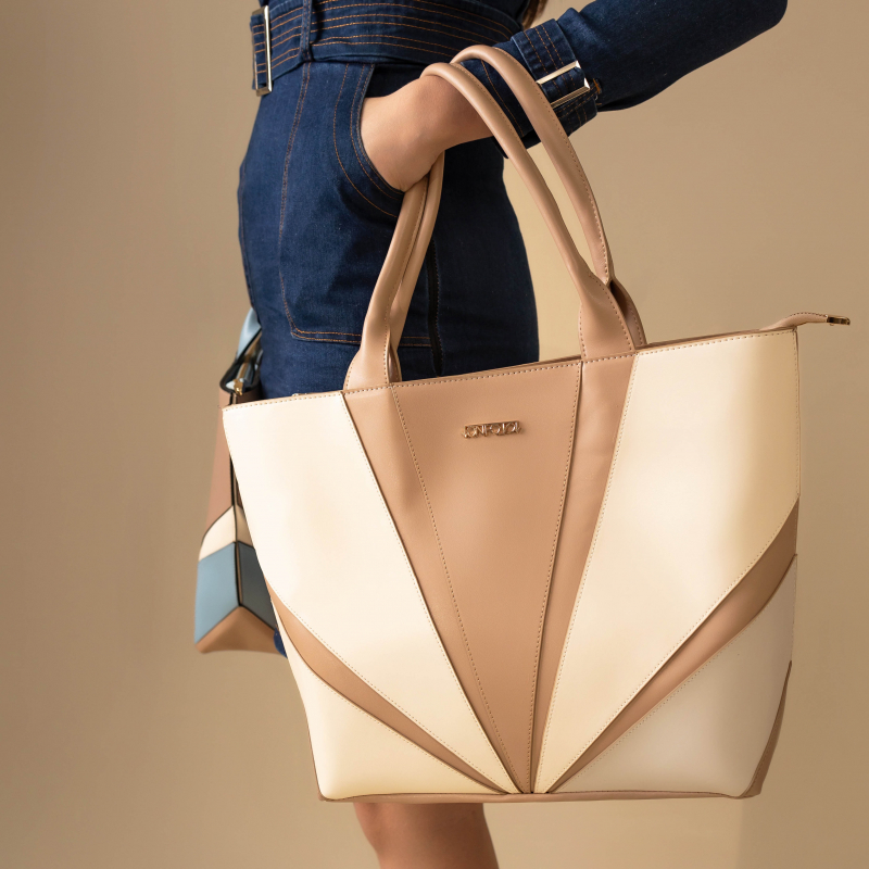 Embrace the warmth of our Dawn Tote Bag, where elegance meets golden hues. Its symmetrical panels and meticulous stitching create a captivating 3D effect, reminiscent of twilight's gentle rays. Adorned with sleek dori handles, this bag showcases a timeless palette of beige and cream, reminiscent of the light and shadow play on the sand dunes at dawn.