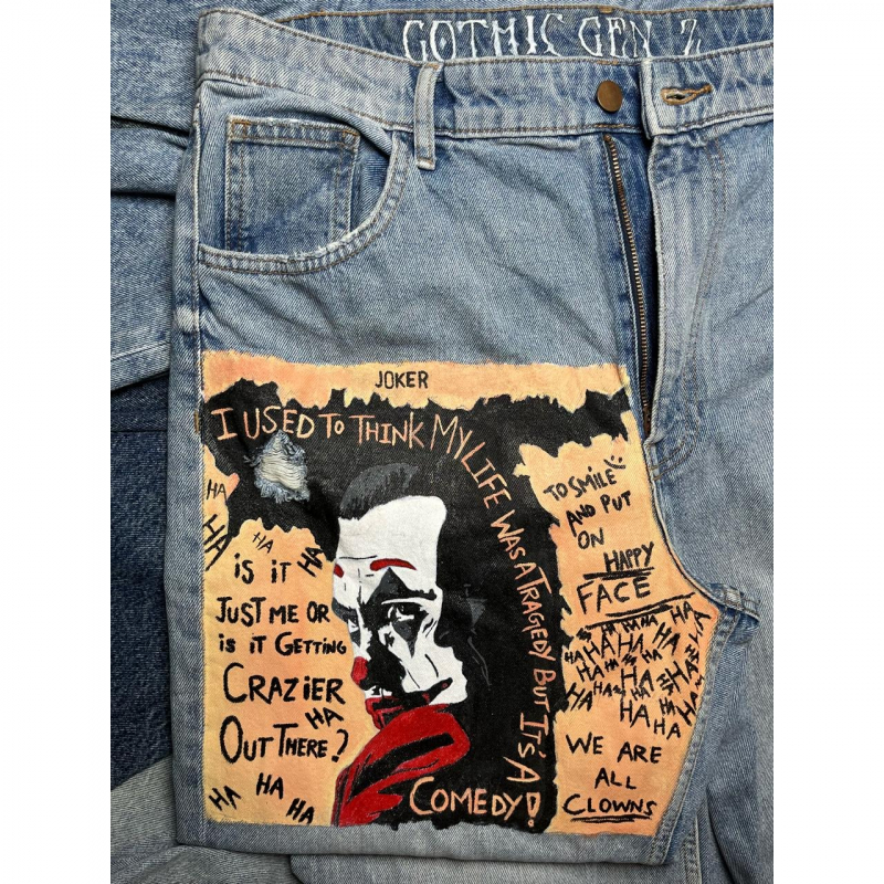 Why fit in when you were born to stand out? Embrace the chaos with our exclusive Joker-inspired hand-painted jeans—a perfect blend of street art and high fashion. 💥 Each piece is uniquely crafted to give you that bold, rebellious vibe. Whether you're walking into the spotlight or the shadows, these jeans will make sure all eyes are on you. 🎭