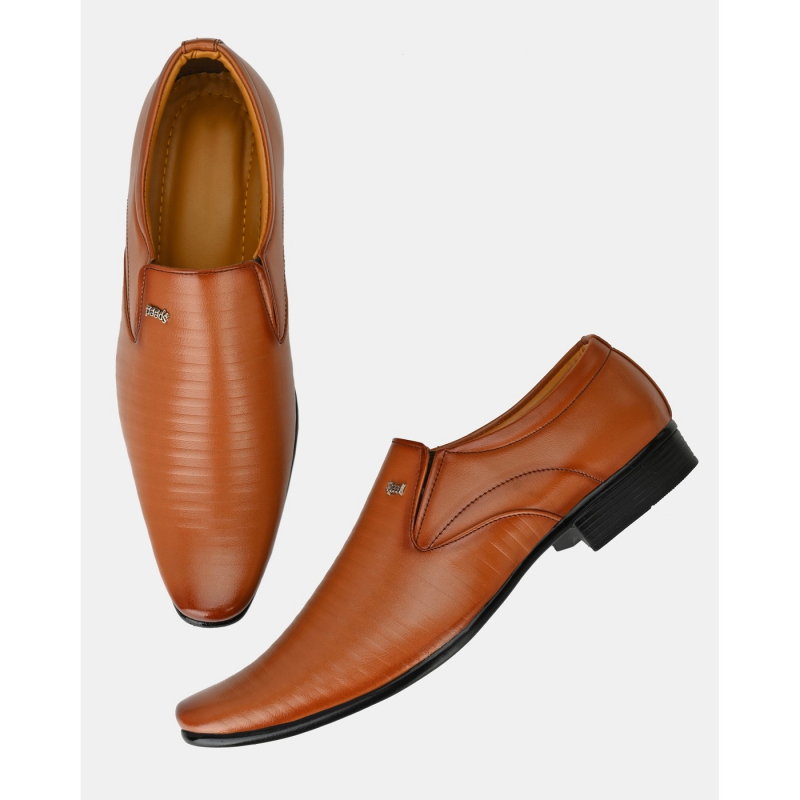 Kwiclo Men's Formal Slip On Shoes Tan