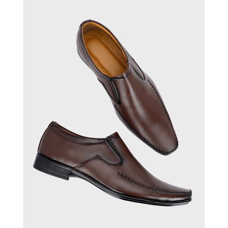 Kwiclo Men's Formal Slip_.Ons Shoes Brown