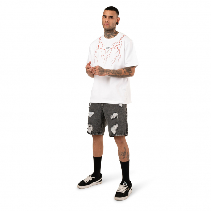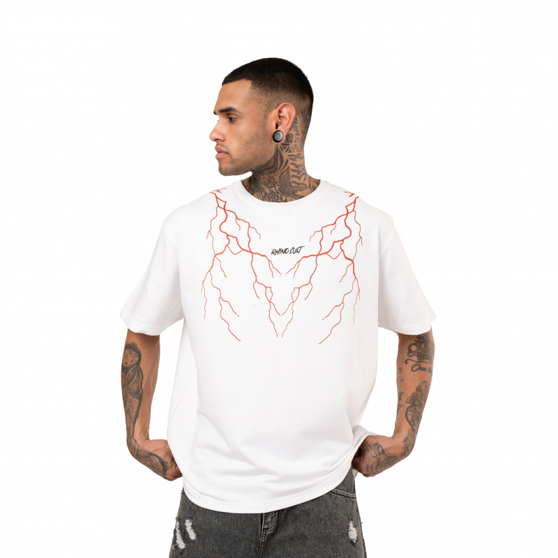 Harness the power of nature with our Electric Eco Oversize Tee. This stylish white tee features a bold and eye-catching thunder print on the front, symbolizing the raw energy and strength of the elements. The oversized fit adds a touch of effortless cool, while the soft, premium cotton terry fabric ensures maximum comfort.