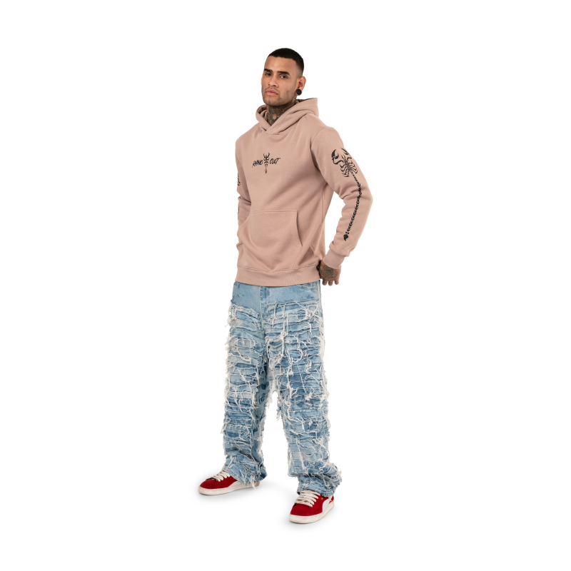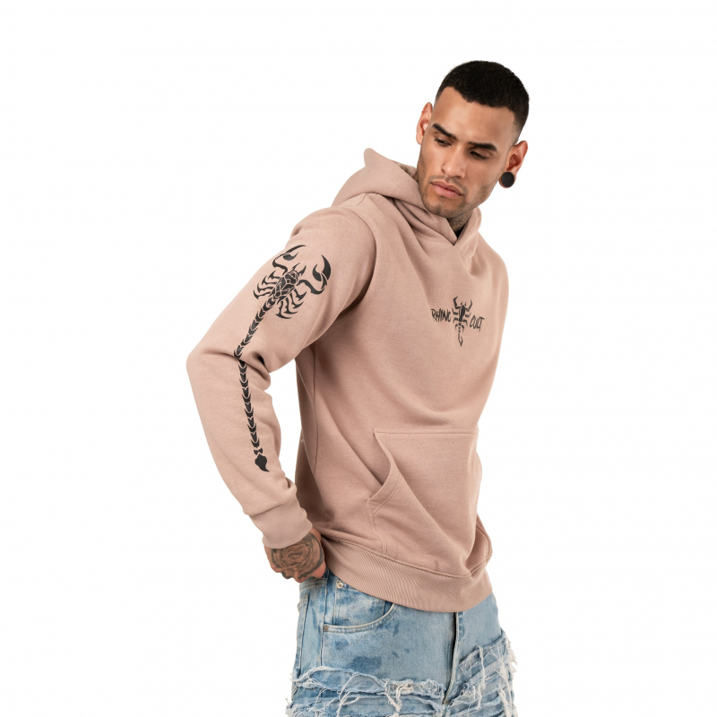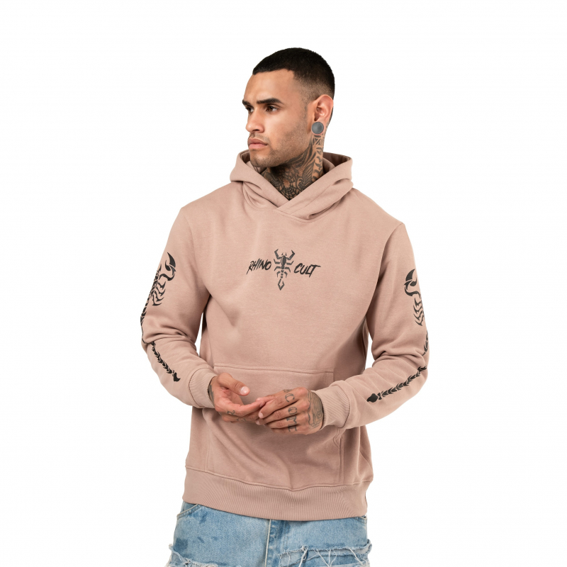 Embrace the wild side with our Scorpion Sting Hoodie. This light brown hoodie features sleek and stylish scorpion prints on the sleeves, adding a touch of danger and intrigue. Crafted from premium 330gsm polycotton, this hoodie offers unparalleled comfort, durability, and a touch of edgy style.