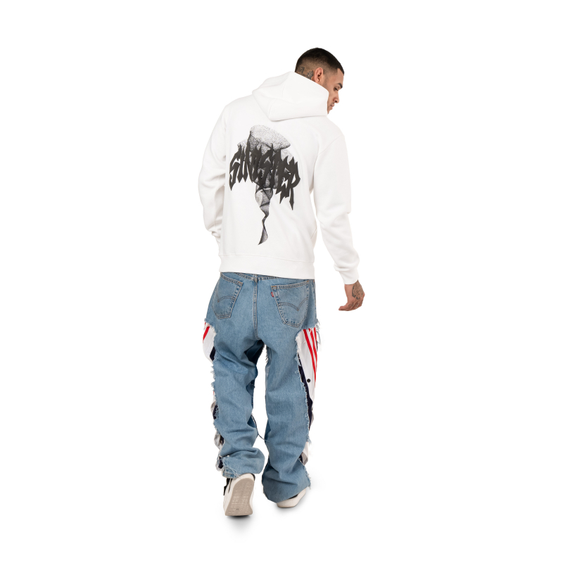 Embrace your dark side with our Sinister Symphony Hoodie. This stylish white hoodie features a captivating sinister goth design, perfect for making a bold statement at your next rave. Crafted from premium 330gsm polycotton, this hoodie offers unparalleled comfort, durability, and a touch of edgy style.